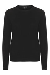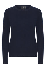 Klassisk och exklusiv rundhalsad damtröja med armbågslappar i samma färg.